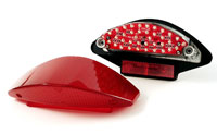 Rugged PC board mounts on precision stainless brackets and machined aluminum posts that hold everything securely to the original tail light base, and the whole works is heavily coated in polyurethane. Extreme vibration resistance means no more regularly replacing the bulb in a big Single. Installation is as easy as removing the 2 lens screws, removing the original incandescent bulb, and plugging in the Beacon. Back on with the lens, you're done.